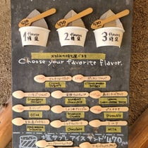 店舗入り口横にある黒板に木のスプーンでをあしらったかわいいメニュー看板には、その日に食べられるメニューが載っています。