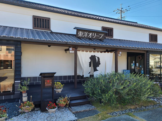 池田港にほど近い所に直営店舗を構える東洋オリーブ。オシャレで落ち着いた外見から店内に入ると色んな種類にのオリーブオイルが並んでいます。